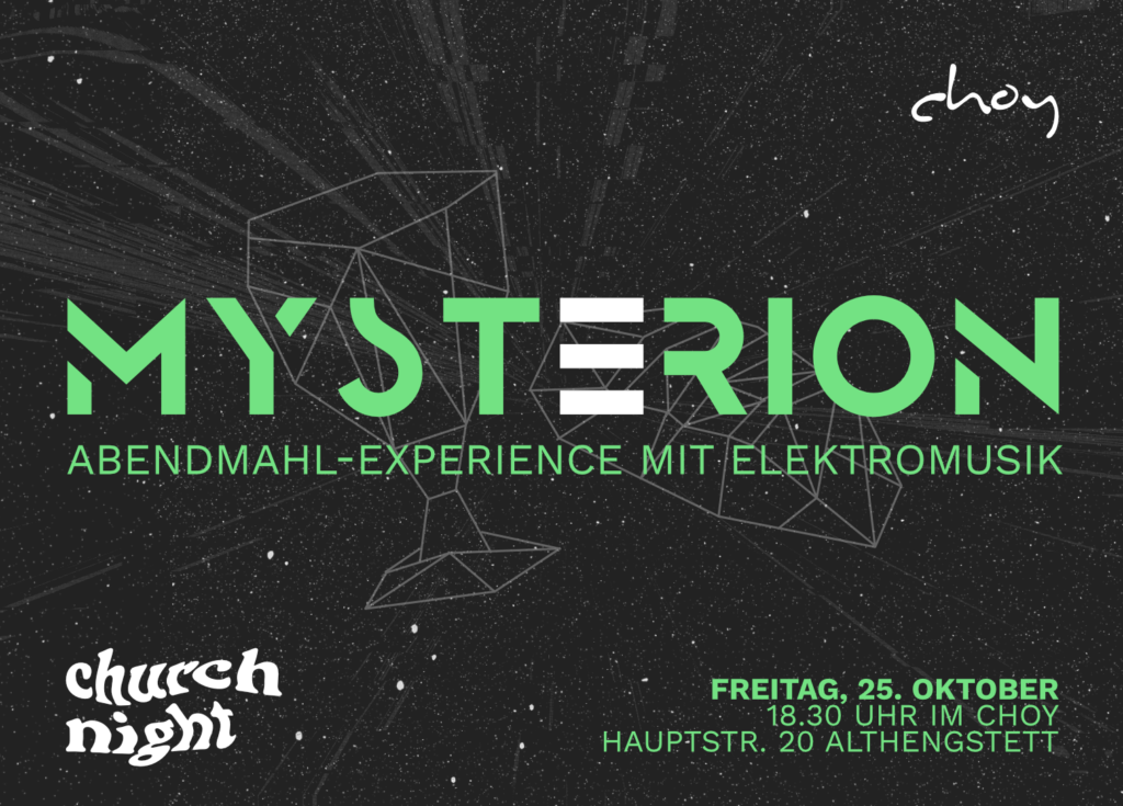 Church Night in Ausblick an 17. Oktober 2024 Play Pause Unmute Mute Am 25. Oktober ist es wieder soweit. Wir feiern um 18:30 Uhr Church Night! Es wird eine besondere Abendmahl-Experience mit Elektromusik geben. Lasst euch überraschen.