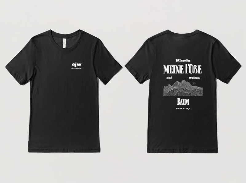 Du willst deinen Glauben teilen und dabei noch brutal gut aussehen? Du willst auf der Straße angesprochen werden was für ein tolles Outfit du trägst? Dann ist die EJW Kollektion genau das Richtige für dich! Das neue Design kombiniert die Tradition des Jugendwerks durch eine Retro-Schriftart und die doch schon legendären Vögel, die am Horizont eines Berge eine Kreuzform bilden. Die eher moderne Skizze des Berges, welche durch den Schriftblock eingerahmt wird, zeigt die Freiheit, die wir durch den Glauben erlangen. Der harte Kern weiß, dass es sich bei dem Vers um unser Leitvers handelt. Mehr EJW geht nicht! Bestelle dir jetzt dein EJW Pulli oder Shirt.