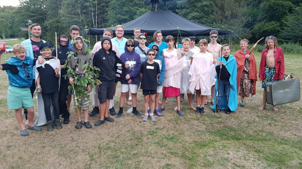 Zum großen Abschlussabend durfte das richtige Outfit auf keinen Fall fehlen. Mit viel Kreativität und Freude bastelten die Jungs sich unglaubliche Outfits. Bis tief in die Nacht (22 Uhr) wurde gefeiert und das Zeltlager nahm so einen würdigen Abschluss.