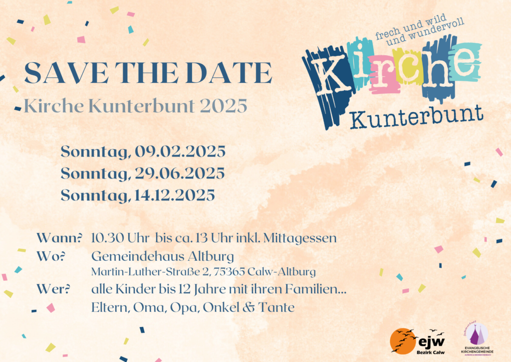 Wir dürfen zusammen mit und in der Evang. Kirchengemeinde Altburg eine KIRCHE KUNTERBUNT starten.