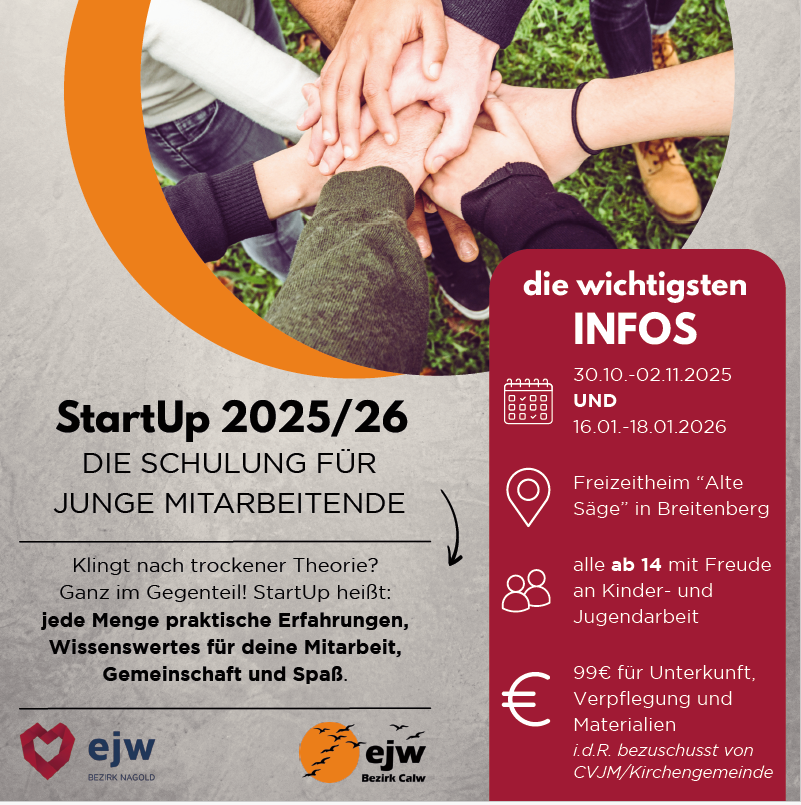 Eine weitere Möglichkeit ist die Teilnahme an einer „Distriktschulung“ direkt über das EJW Bezirk Calw. Hierfür läuft die Anmeldung direkt über das EJW.